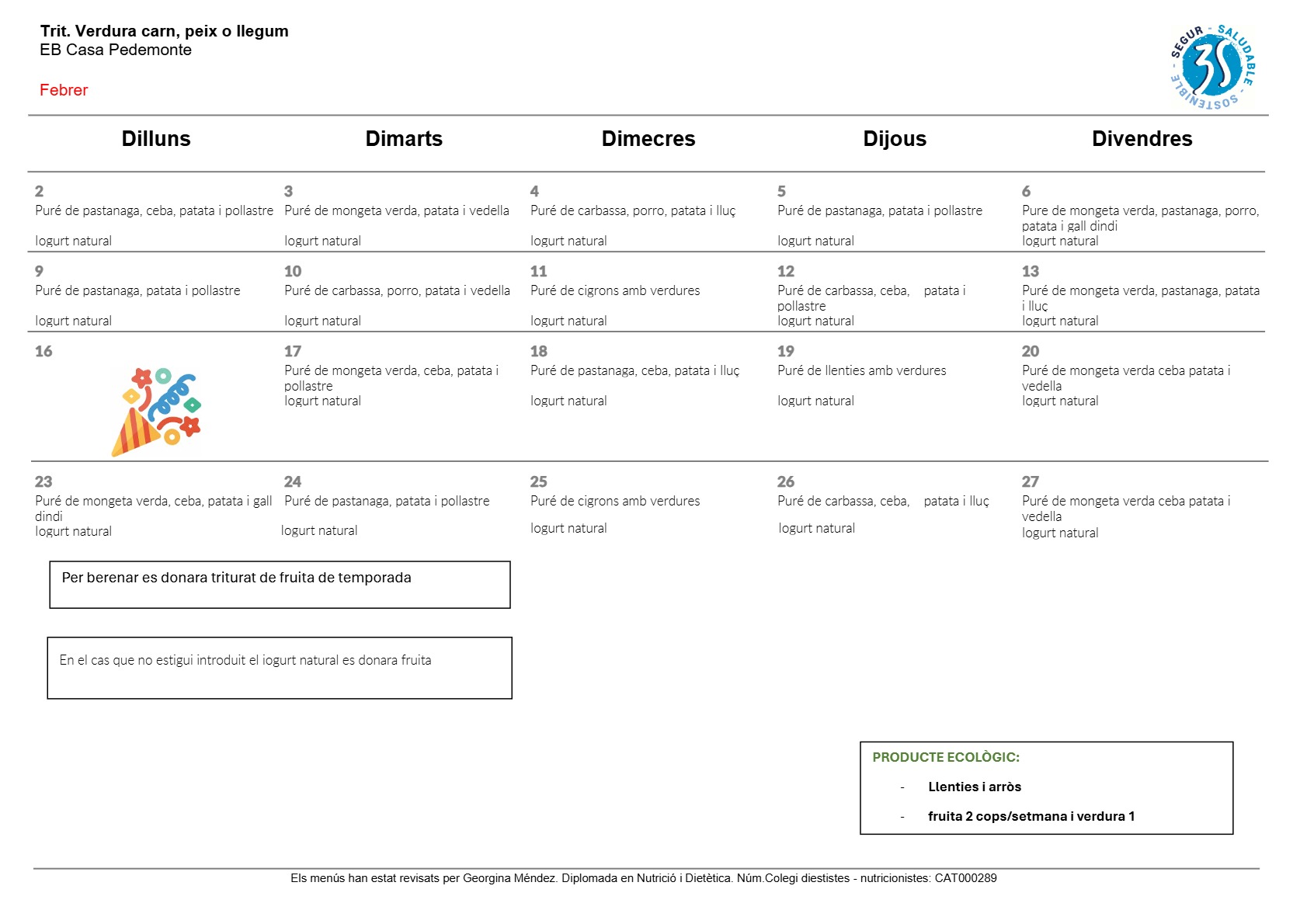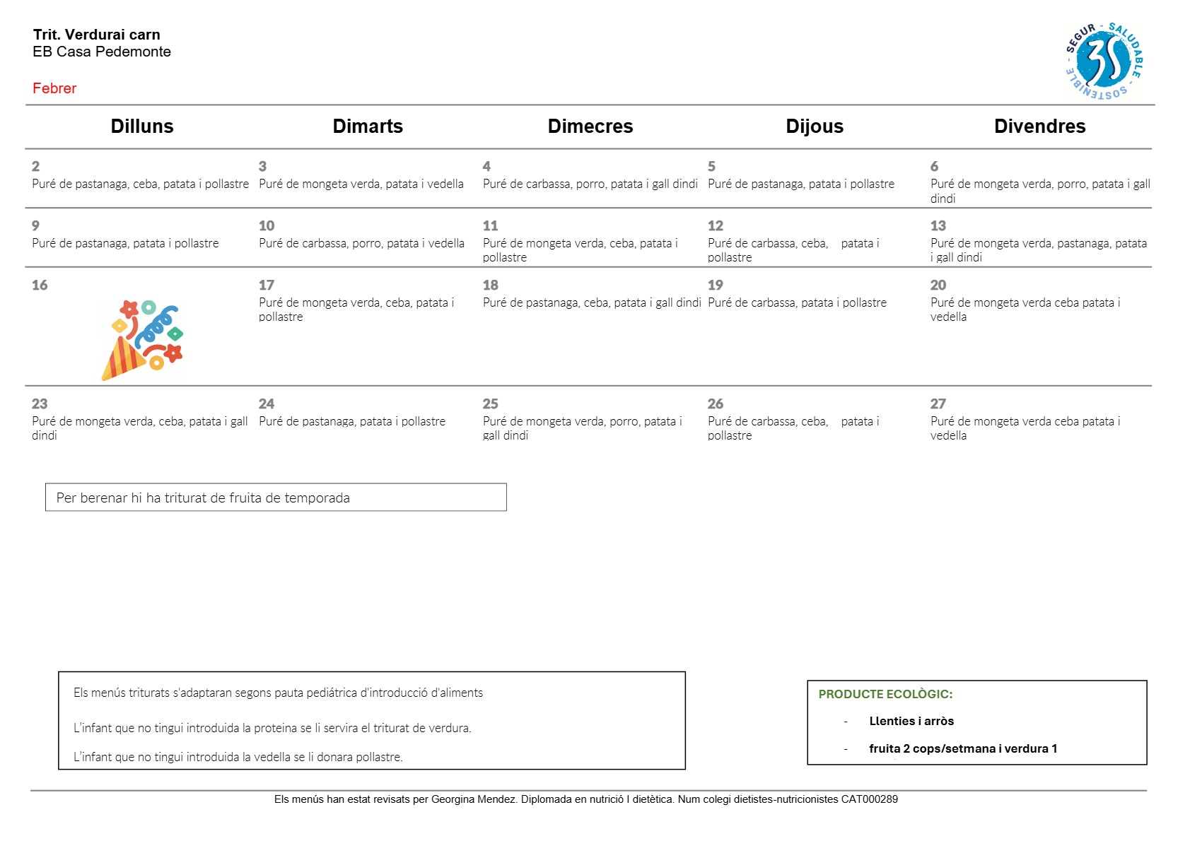 La nostra escola compta amb cuina pròpia i una cuinera que amb molt d’ amor elabora els plats amb productes de proximitat i de temporada i molts d’ells ecològics.