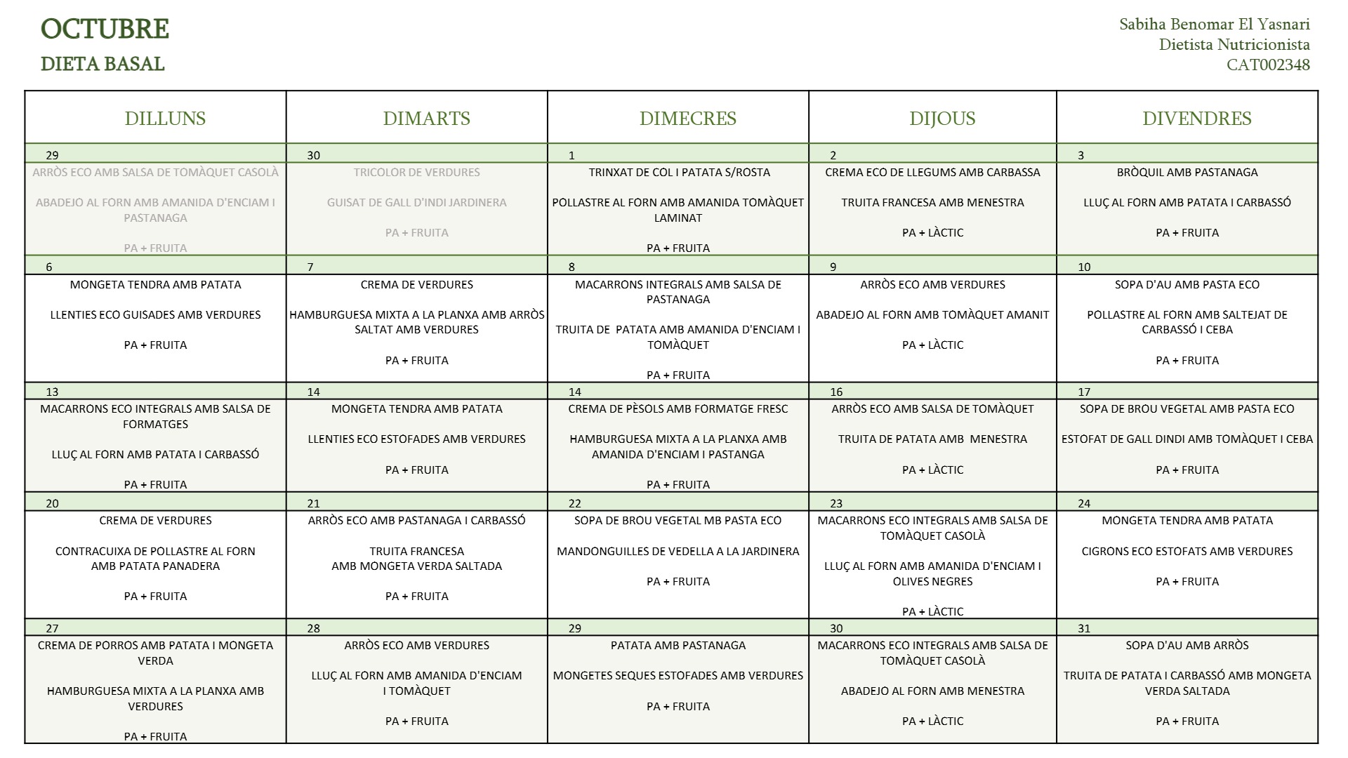 SERVEI DE MENJADOR | 12:00h a 15:00h |