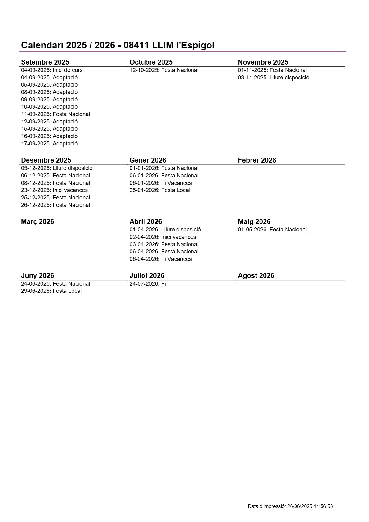 Estimades famílies, benvingudes a la LLIM L’ESPÍGOL, Sant Pere de Ribes